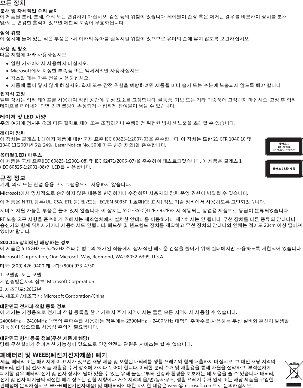 レーザーと LED の仕様