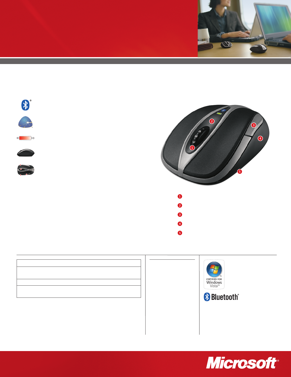 Enjoy wireless freedom with the Microsoft® Bluetooth® Notebook Mouse 5000 — no transceiver to connect or lose! Keep USB ports free